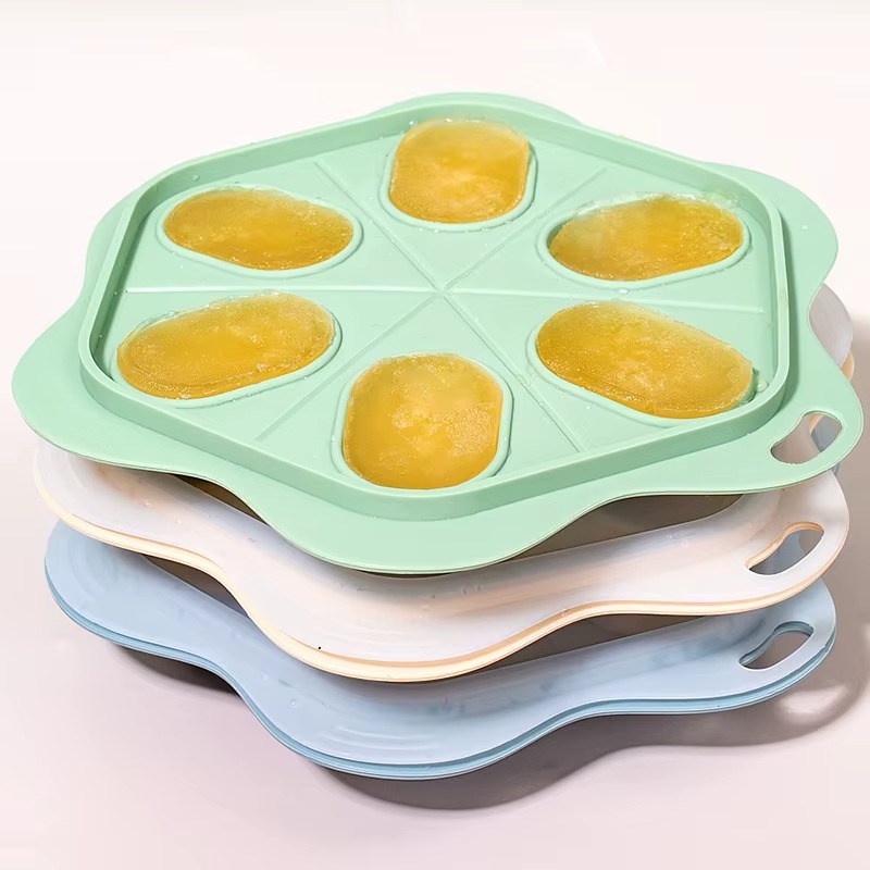 Silicone Baby Food Freezer Tray Round Ice Fruit Mold Ice Cube Tray With Lids Baby Food Freezer