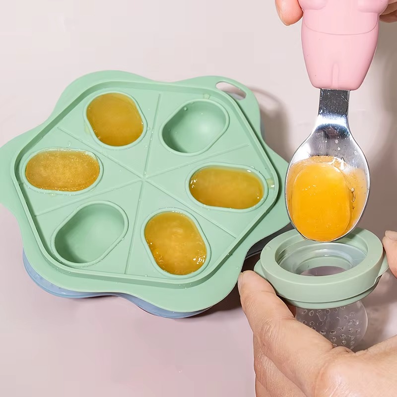 Food Grade Silicone: Food feeder and freezer tray are made of 100% food-grade silicone, BPA, PVC and phthalate free, making sure them is safe for baby food storage and feeding. They also can used in a freezer, microwave, steamer and dishwasher safely.