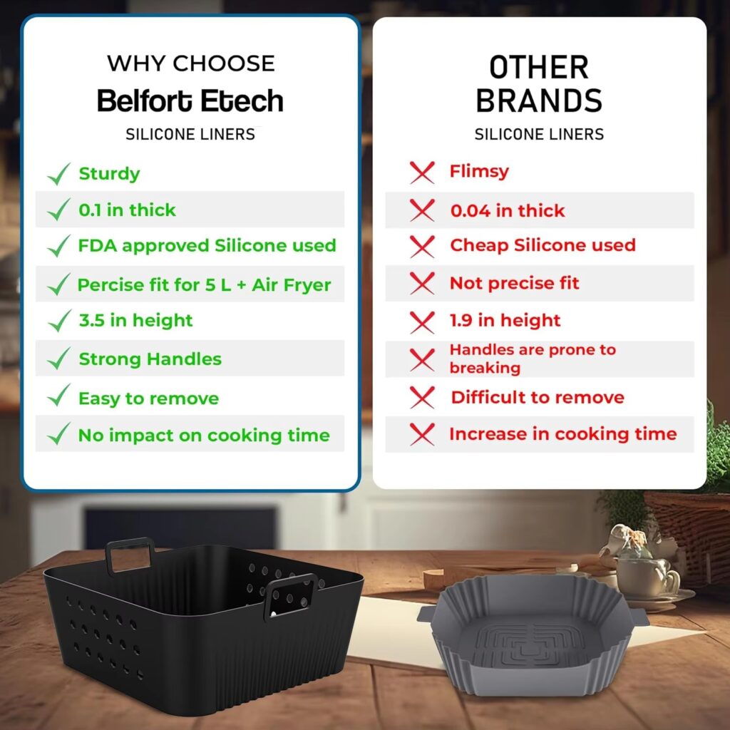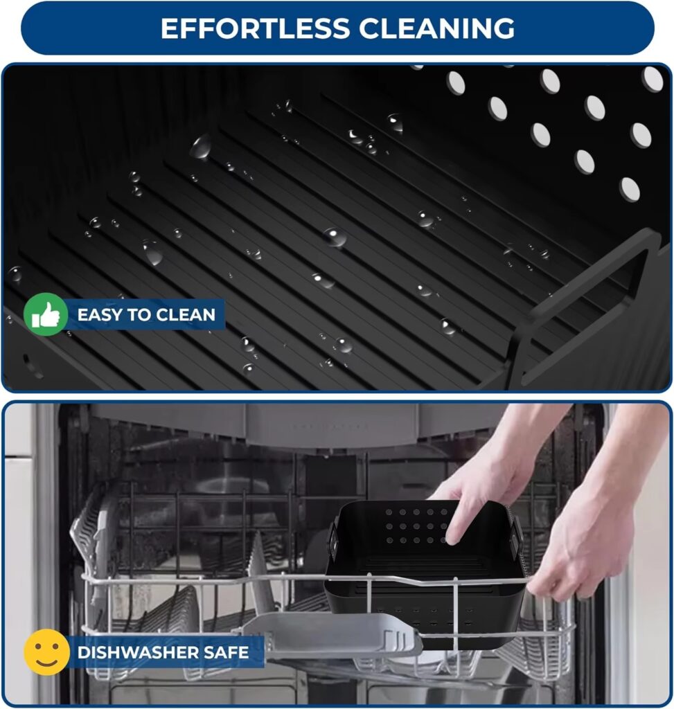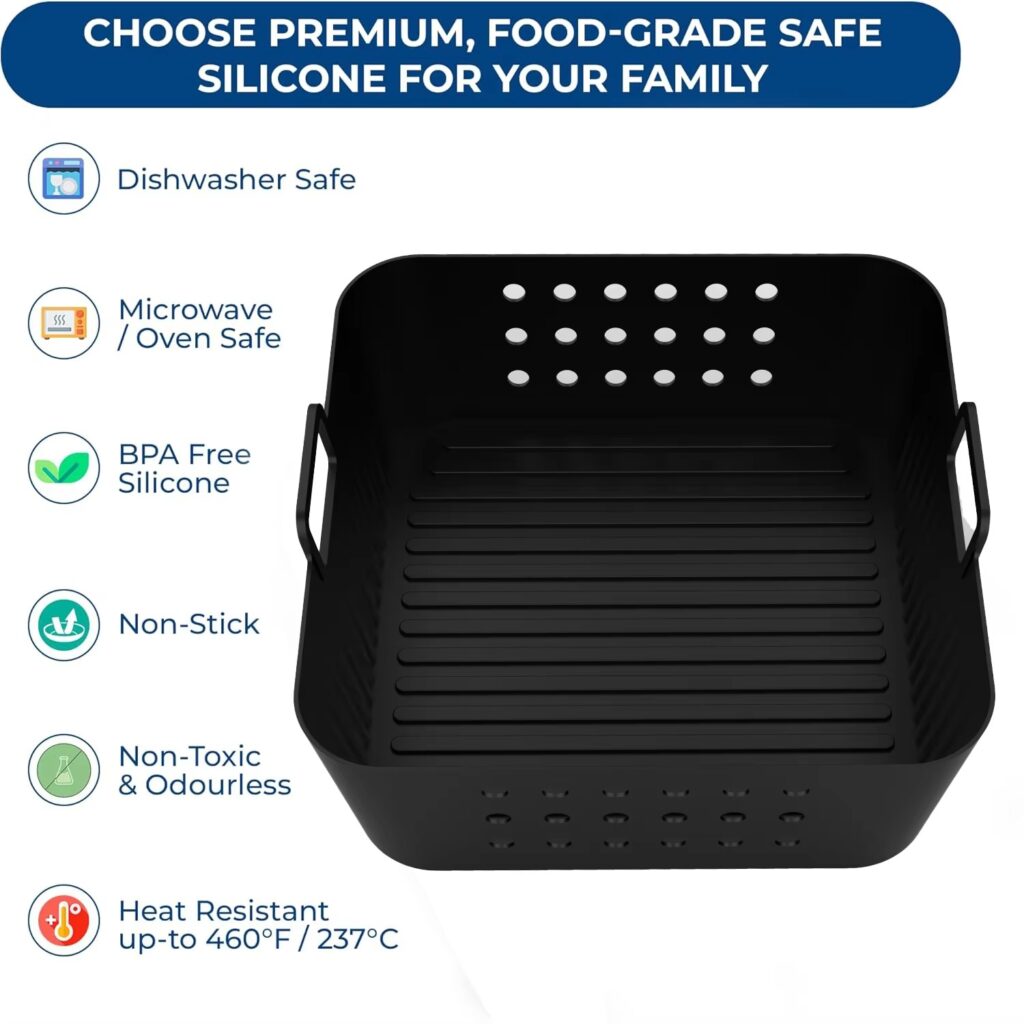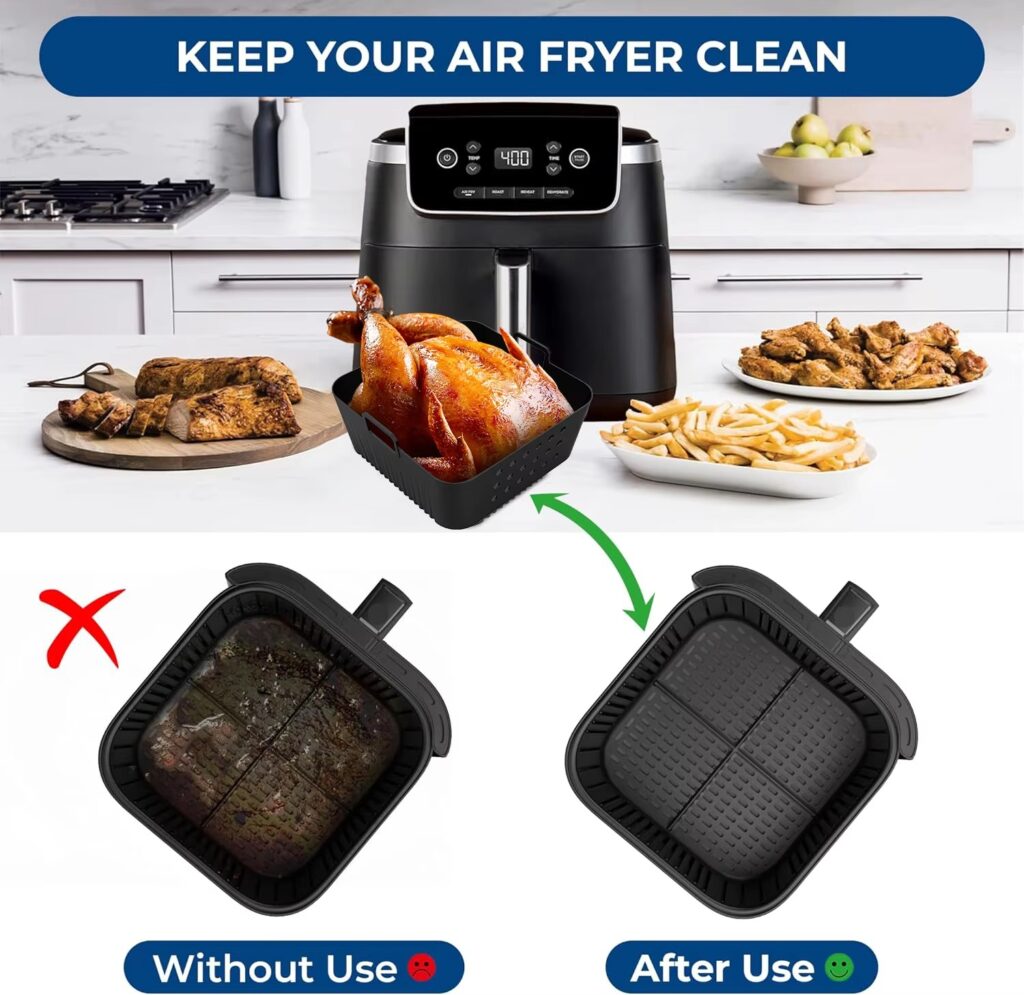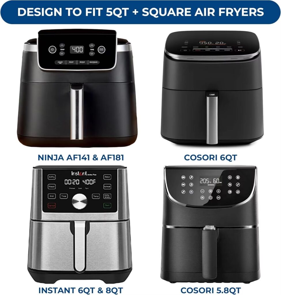 FOOD GRADE MATERIAL & HIGH HEAT-RESISTANT: Made of premium food grade silicone, flexible, waterproof, oil-proof, safe for daily use, perfect double air fryer accessories. heat-resistant up to 450℉ /230℃, microwave & oven safe