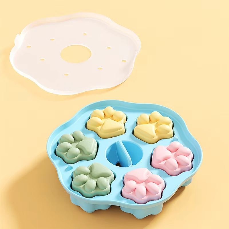 Cat paw silicone ice cream molds made from food-grade silicone, safe, durable, and reusable. Each compartment includes a sealed lid for easy storage and transport. With high and low temperature resistance, these molds are perfect for making popsicles, cakes, cookies, or even pet treats.