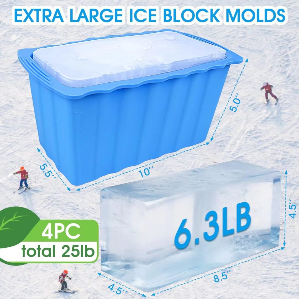 LARGE CAPACITY—TIME&MONEY-SAVING: The ice block molds can make 6.3LB of giant ice cubes, totaling 4, you can get 25LB of large ice blocks simultaneously, equivalent to a small ice maker. It not only saves you expensive ice pack costs but also allows you to enjoy ice cold plunge anytime, anywhere without spending time buying ice blocks going to the store
