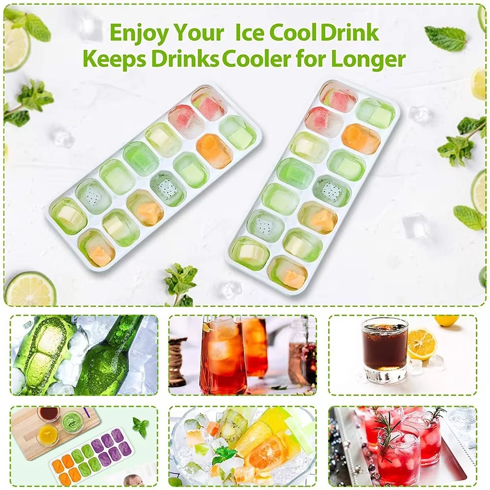 Sturdy and Durable: Made of silicone and PP material, our ice cube trays for freezer are sturdy enough to withstand long-term low-temperature storage without breaking. No longer worry about breaking easily. Besides, our silicone bottom is soft enough to release the ice easily, so twisting is no longer needed, which makes the ice trays even more durable
