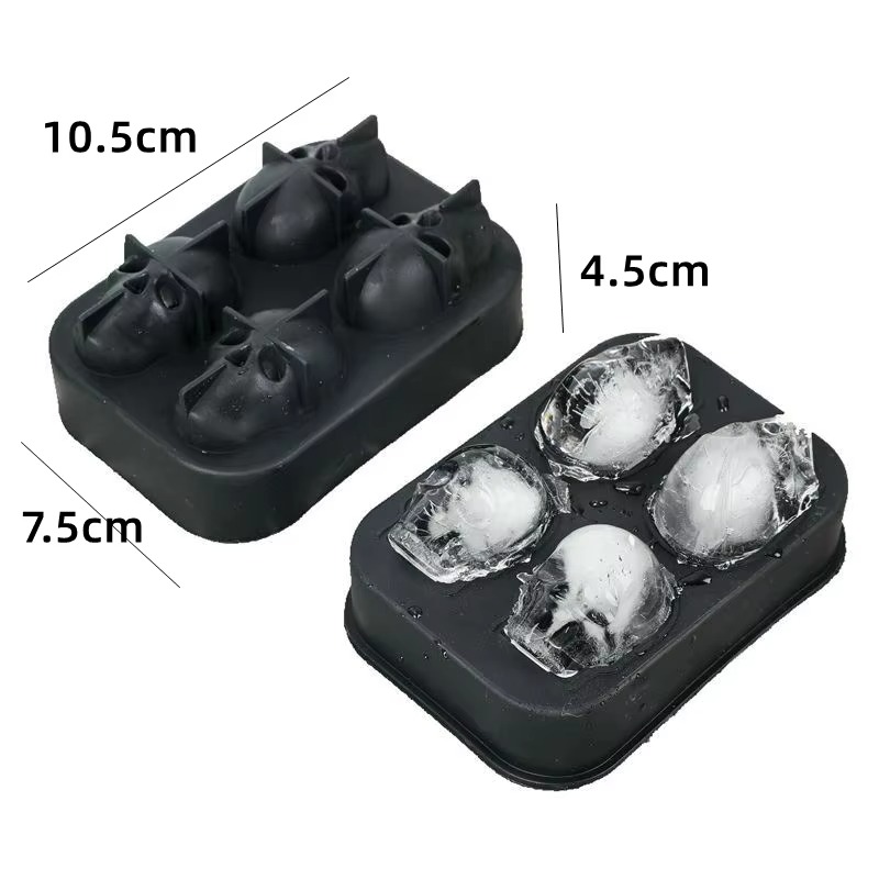 Food-grade silicone skull ice mold with lid to block odors and dust. Durable, flexible, and easy to release—perfect for making long-lasting ice for cocktails, coffee, juice, or chocolate. Fun design for parties, bars, and holiday gifts.