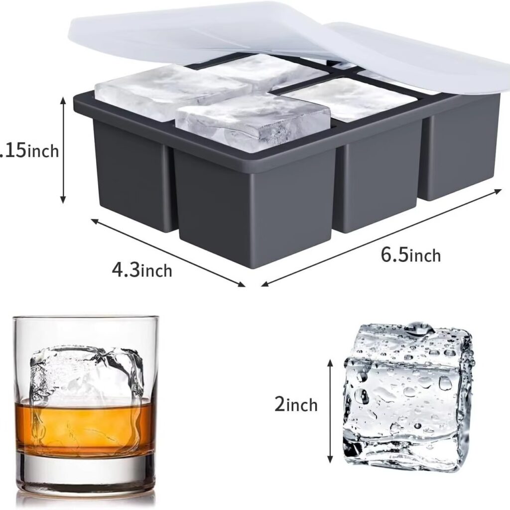 BIG ICE CUBE TRAYS WITH LID: The tight-fitting silicone lid prevents large ice cubes from absorbing refrigerator odors, keeps ice cubes clean and fresh, and prevents spills and leaks. Bourbon ice cube trays can be neatly stacked in the refrigerator to save freezer space.