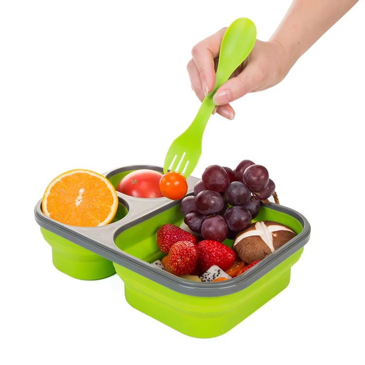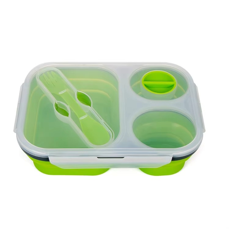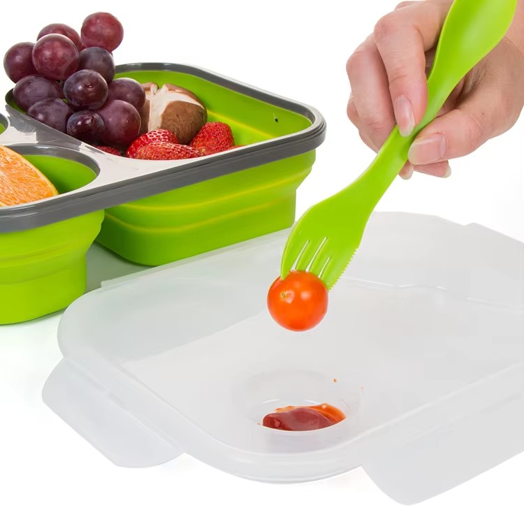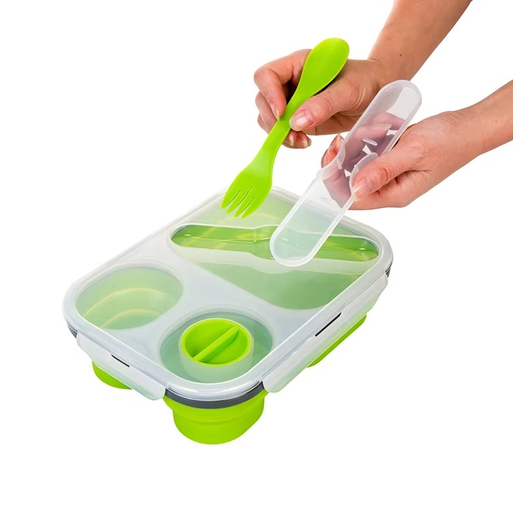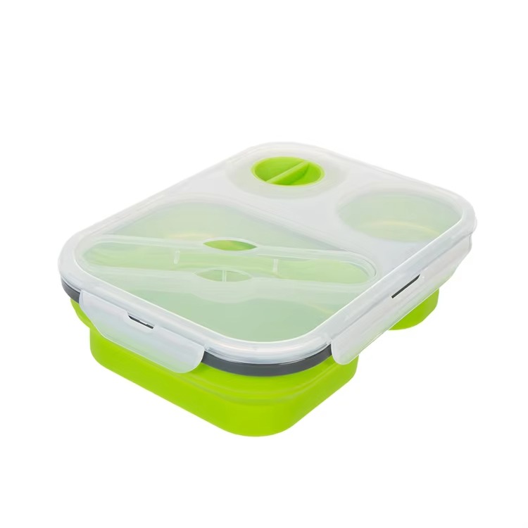 Silicone folding lunch box, bento box, portable silicone lunch box, refrigerator fresh-keeping box