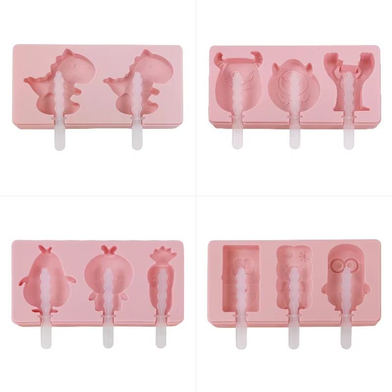 Custom DIY Children Cartoon Ice Cube Silicone Mold Trays Easy-release Food Grade Silicone With Spill-resistant Removable Lid