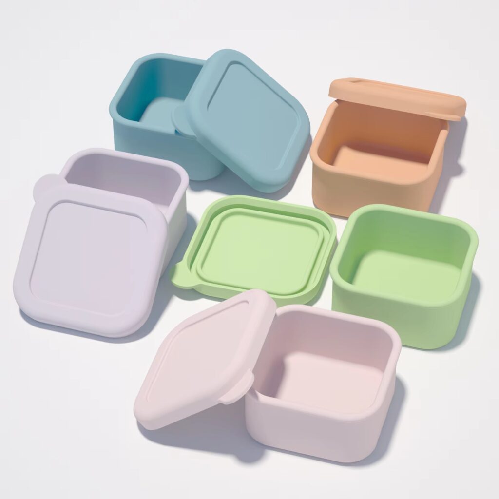 BPA-Free 100ml Silicone Mold Baby Food Storage Small Reusable Square Lids Microwave Heatable for Snack Meal Storage Preservation