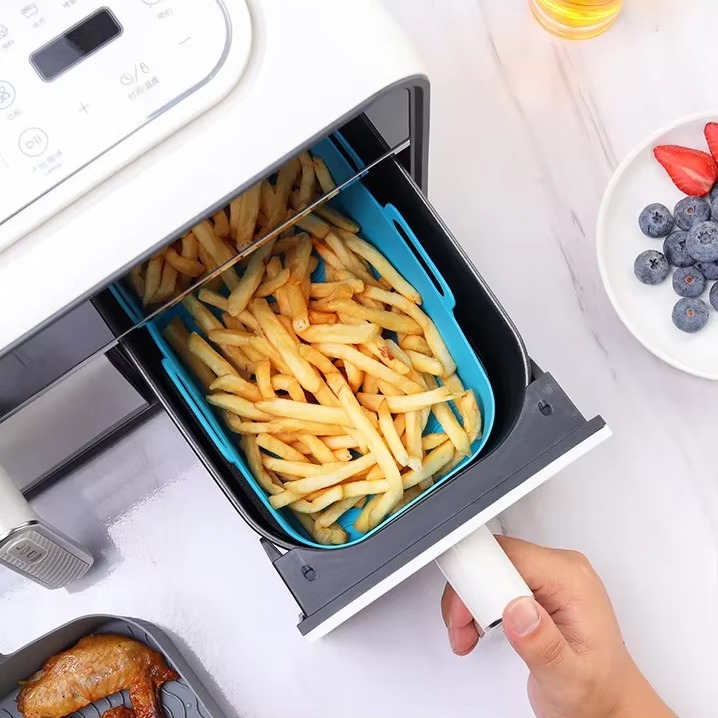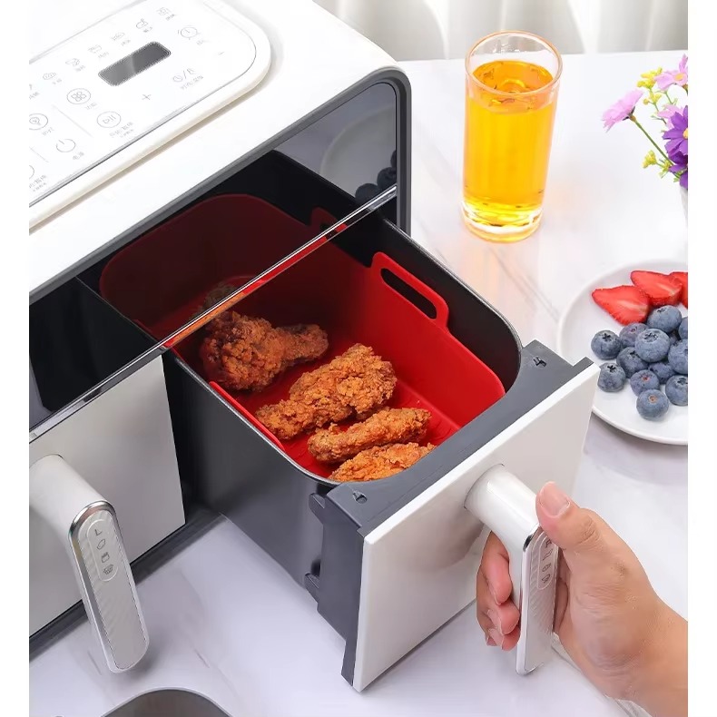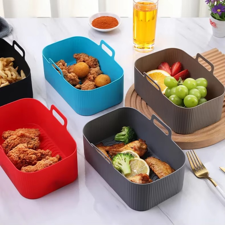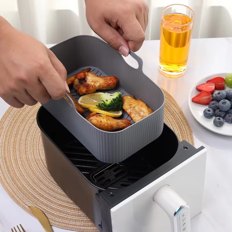 Wholesale Custom LOGO Food Grade Silicone Mold Maker Air Fryer Liner Baking Tray Pan Rectangle Non Stick Reusable Basket