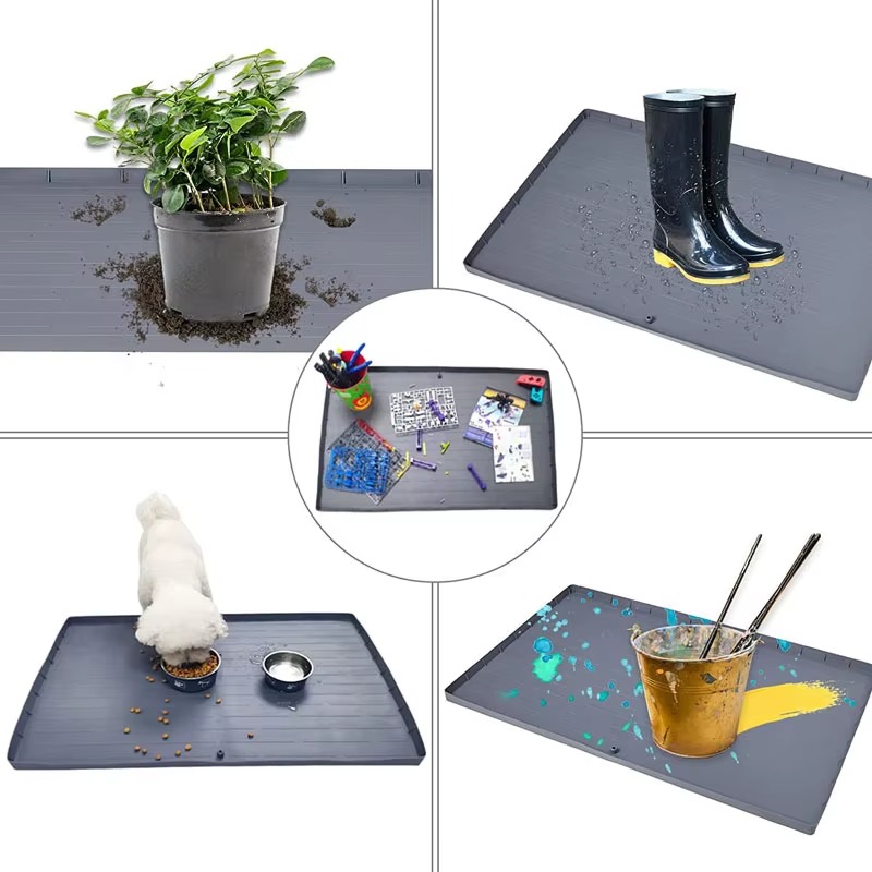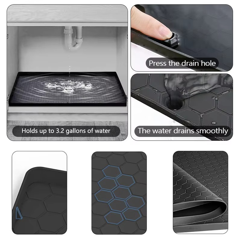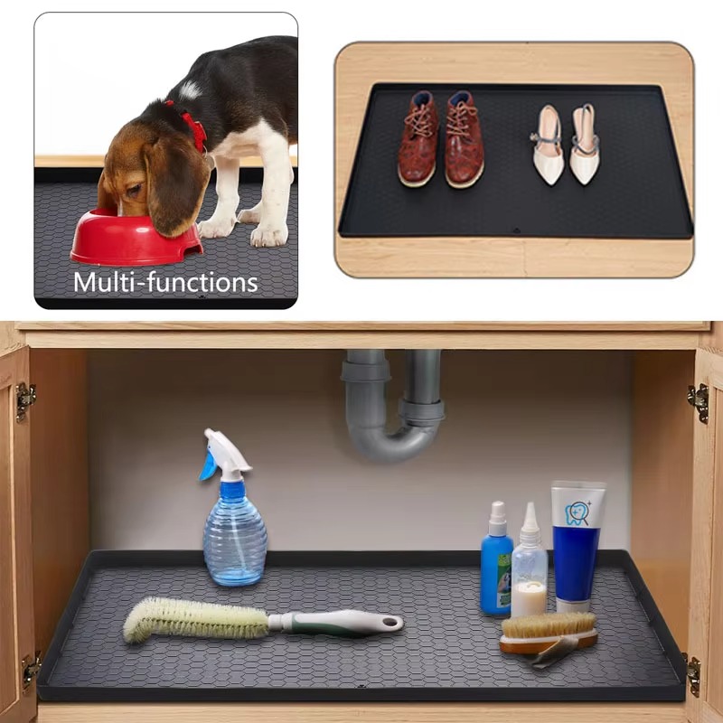 MULTI-PURPOSE USE: More than a sink drip tray! Use it under kitchen sinks, bathroom vanities, pet feeding stations, or laundry machines. Our silicone mat offers ultimate waterproof cabinet protection wherever spills or messes can happen!