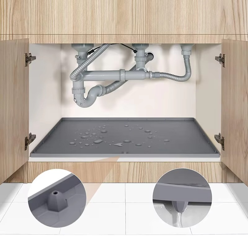 MAXIMUM LEAK PROTECTION: Stop water damage before it starts! Our Silicone Under Sink Mat acts as a waterproof barrier, trapping leaks, spills, and drips under your kitchen or bathroom sink. Keep cabinets dry, spotless, and mold-free daily!