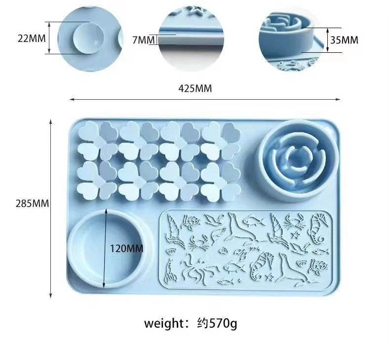 Promote Healthy Eating: This pet slow food mat is designed to slow down your pet’s eating speed by encouraging them to enjoy the licking process. This helps prevent digestive problems caused by eating too quickly and cultivates healthy eating habits. Its clever design stimulates your pet’s mind, slows down their eating speed, and helps prevent health issues such as obesity and bloating