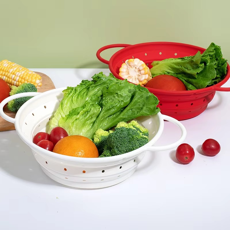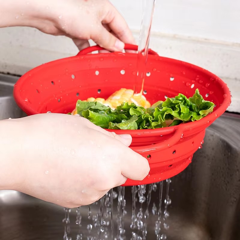 Wholesale Foldable Food Grade Silicone Drain Basket Household Kitchen Vegetable and Fruit Washing Basket Baking Mold Maker