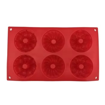 【6 Cavity Mini Cake Pans】Silicone molds measuring 11.5×6.9×1.6 inches each with 6 cavities measuring 2.9inches each.