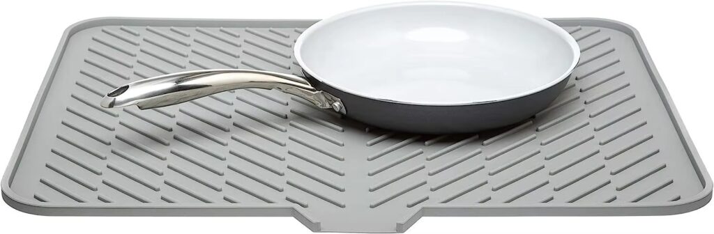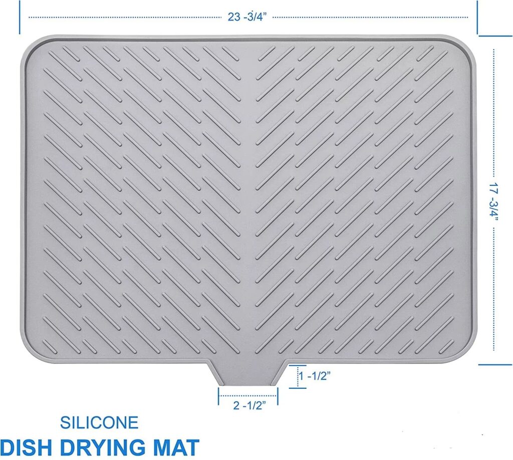 X-LARGE AND COMPACT: The Dish Drying Mat measures 23.6 x 17.7 inch size (measure your space so you get an accurate idea of the size), providing a convenient spot to place washed dishes, glasses, silverware, pots and pans for air drying without taking up an excessive amount of space on your countertop.