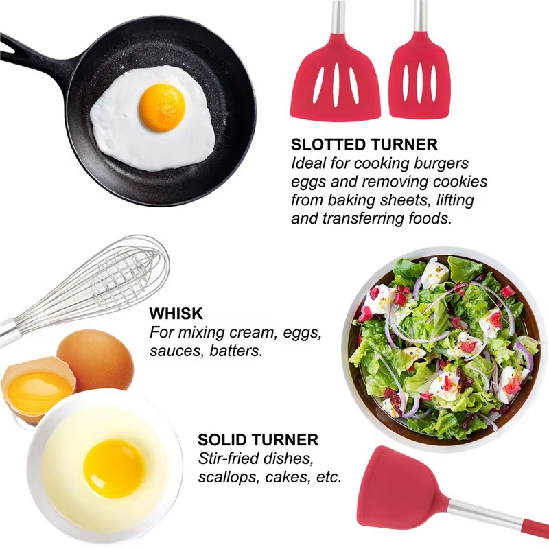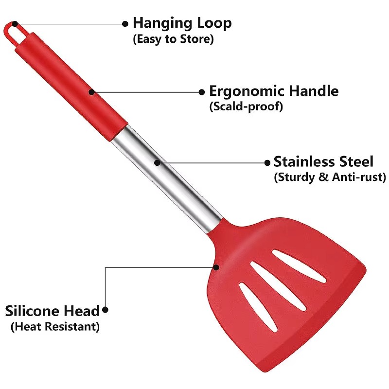 Thoughtful Design : The good-quality 18/8 stainless steel keeps you away from the trouble of kitchen utensils rusting or breaking; This anti-scald silicone handle is not easy to conduct heat and is more comfortable to hold than traditional utensils