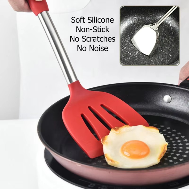 Pack Of 2 Silicone Mold Solid Turner Non Stick Kitchen Wide Stainless Steel Big Silicone Slotted Turner Spatula Set