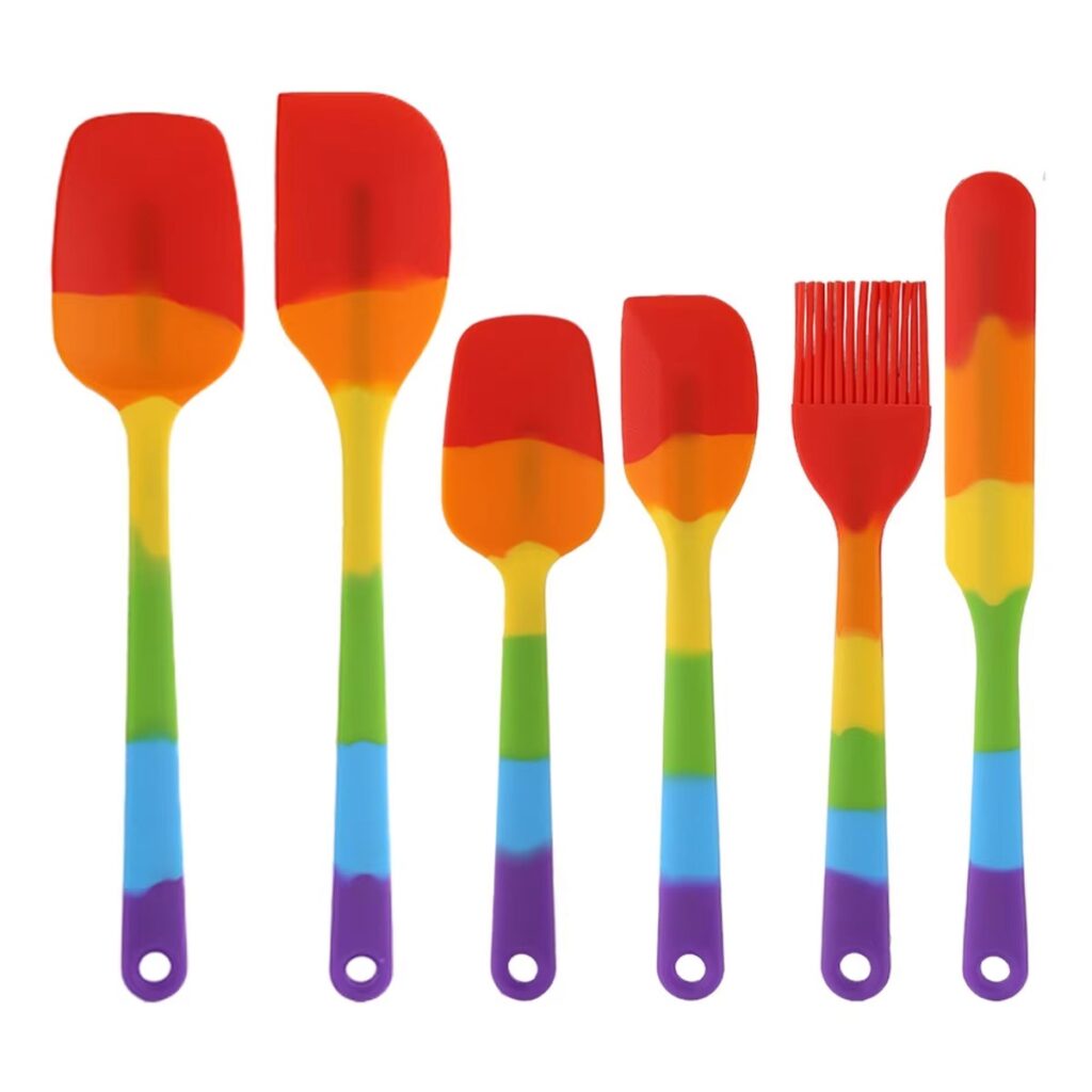 Easy Clean Silicone Mold Colourful Cake Tools Baking Set Dishwasher Safe Integrated Spatula 6pcs Minimum Order