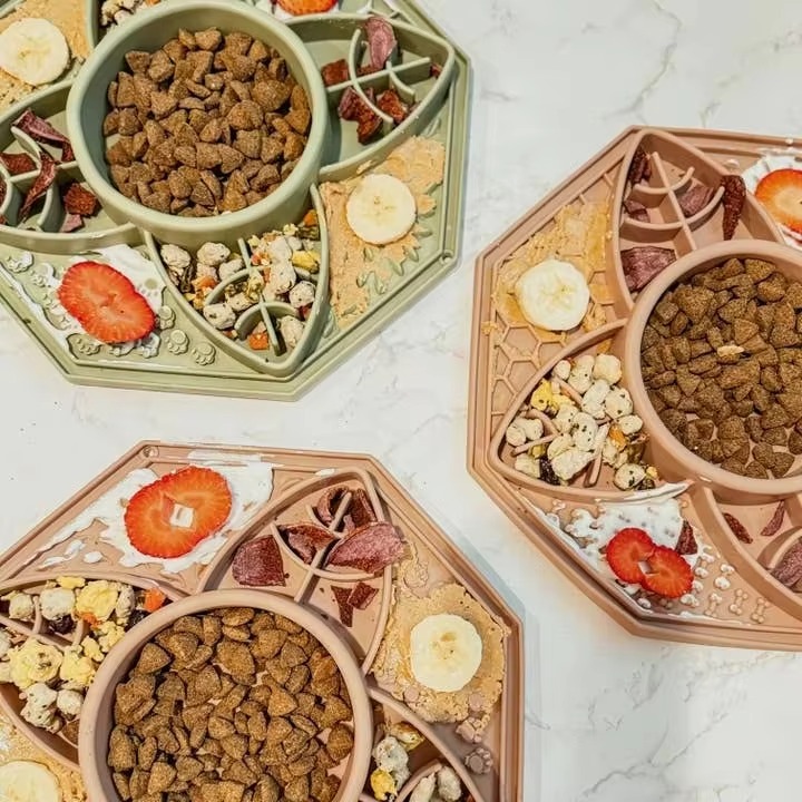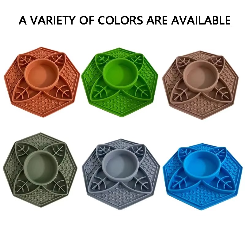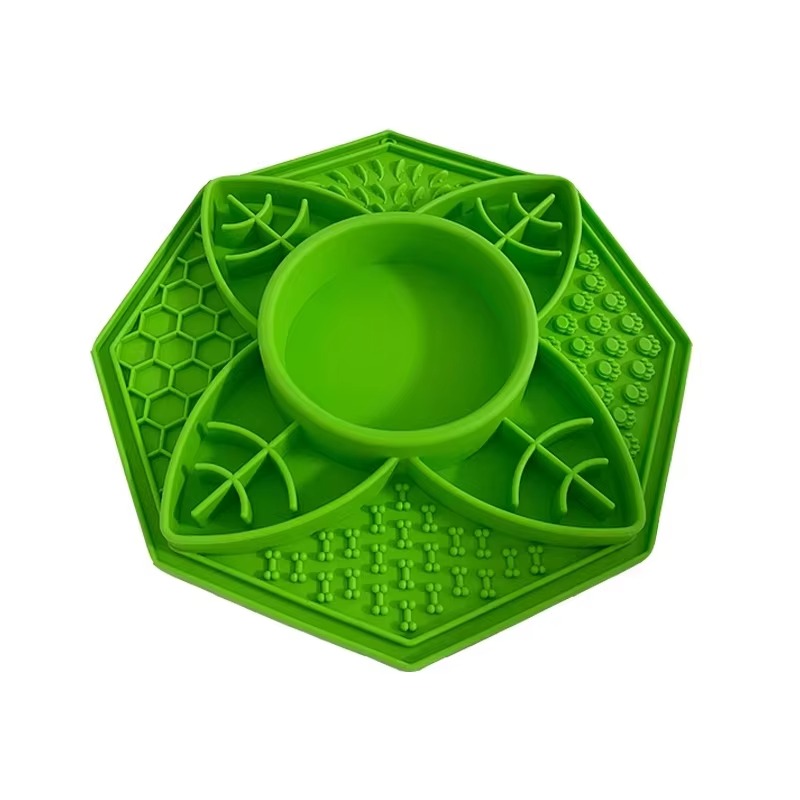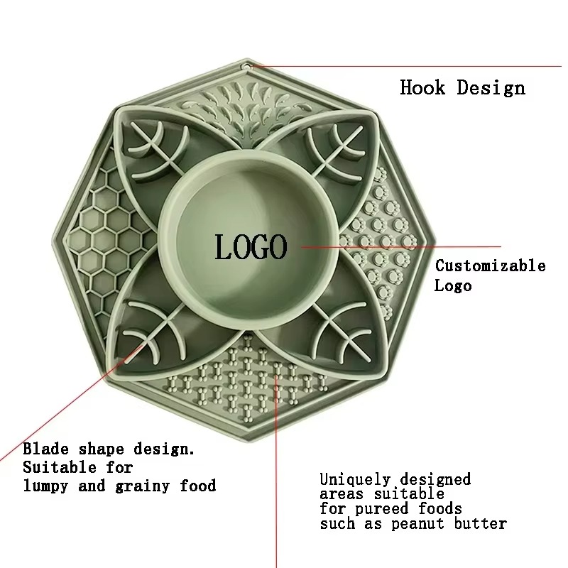 New Octagonal Shape Food Grade Silicone Slow Feeder Bowl for Dogs Lick Pad Anxiety Relief Dog Lick Mat with Suction Cups
