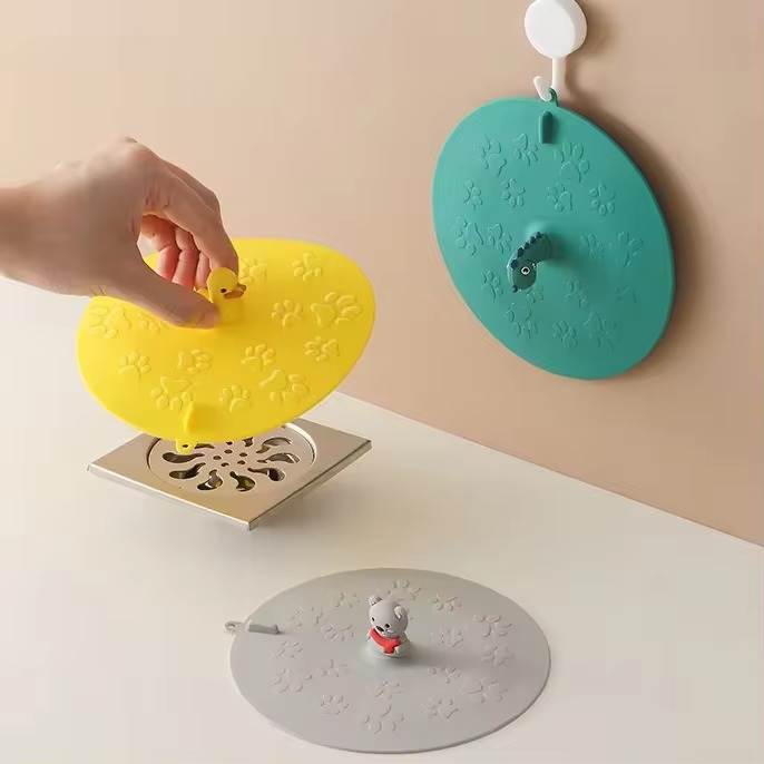 Wholesale Custom Silicone Bathtub Stopper Bath Tub Drain Plug Cute Cartoon Drain Hair Catcher Anti Odor Drain Cover
