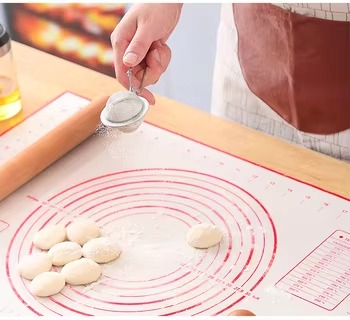 This pastry mat is made of premium food-grade silicone and glass fiber—safe, soft, durable, and resistant to deformation, wrinkling, and fading. Its non-sticky surface lets grease or dough be easily cleaned, keeping countertops sanitary, while the anti-slip bottom adheres firmly to surfaces without sliding. Equipped with precise baking measurement markers, it simplifies measuring, rolling out pie dough/pizza crust, and cutting dough. After drying, it can be rolled up or folded for easy storage.