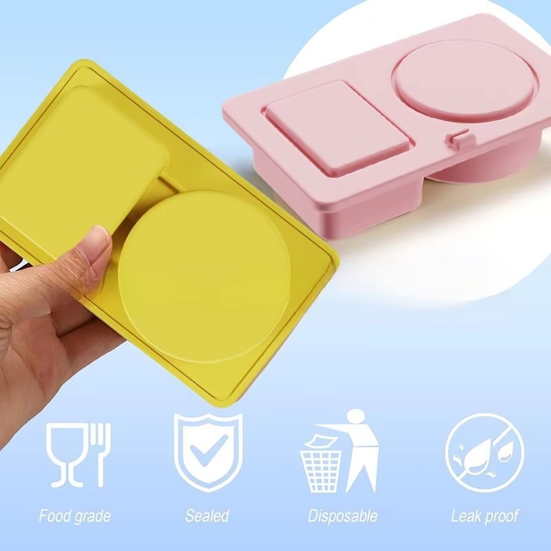 These reusable silicone snack containers with lids are crafted from high-quality food-grade silicone, ensuring snack safety while being cost-saving, hygienic, and eco-friendly by reducing disposable packaging. Featuring a double-layer design, they store snacks and sauces separately to avoid flavor mixing and help control portions for a balanced diet. Each container has a secure lid to lock freshness and prevent spills (for salad dressing, fruit, snacks, etc.), plus a buckle strap to hold a spoon/fork. Stain-resistant (no easy food residue buildup), they’re microwave, fridge, and dishwasher safe for easy use. Compact and portable, the mini containers are ideal for picnics, travel, office meals, or daily use, keeping food fresh anytime.