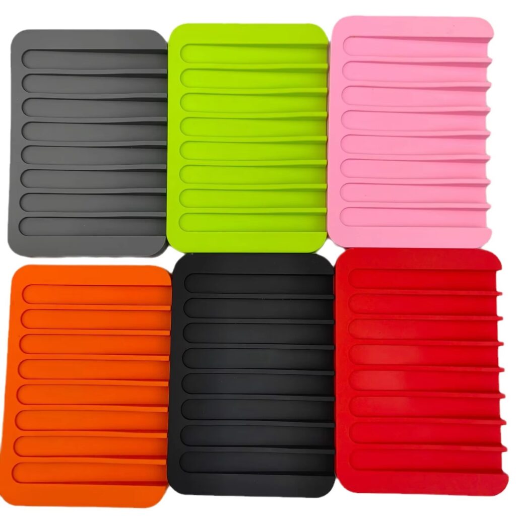 This silicone soap tray features a unique comb-shaped, overhead structure paired with anti-skidding strips, ensuring efficient draining that keeps soap from dissolving easily. Crafted from soft, highly flexible, and ductile silicone, it can be kneaded arbitrarily without losing shape. Available in vibrant candy colors, it adds a decorative touch to your home while being highly practical.