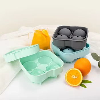 Custom Bpa-free Food Grade Silicone Mold Ice Cream Cubes Reusable Whiskey Ice Ball Maker With Lids Tools Wholesale