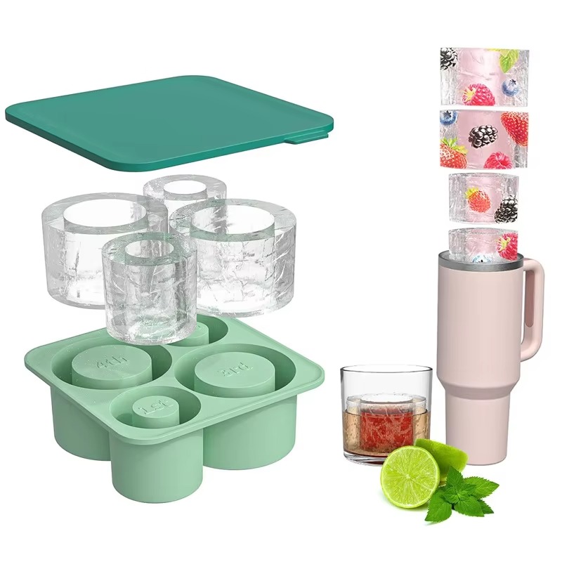 4pcs Cylinder Food Grade Ice Ring Mold for Cup 40 Oz 30 Oz Tumbler Silicone Ice Cream Cubes Maker Tray With Lid Wholesale