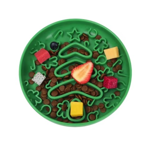 - [Promote Healthy Eating]Our dog slow feeder bowl features an innovative Christmas tree maze pattern to effectively prevent rapid eating and choking. This interactive dog bowl can extend mealtime by up to 10 times, reducing bloating, vomiting, and obesity, lowering the risk of choking, supporting better digestion, and contributing to your pet’s overall health, making them happier and healthier.