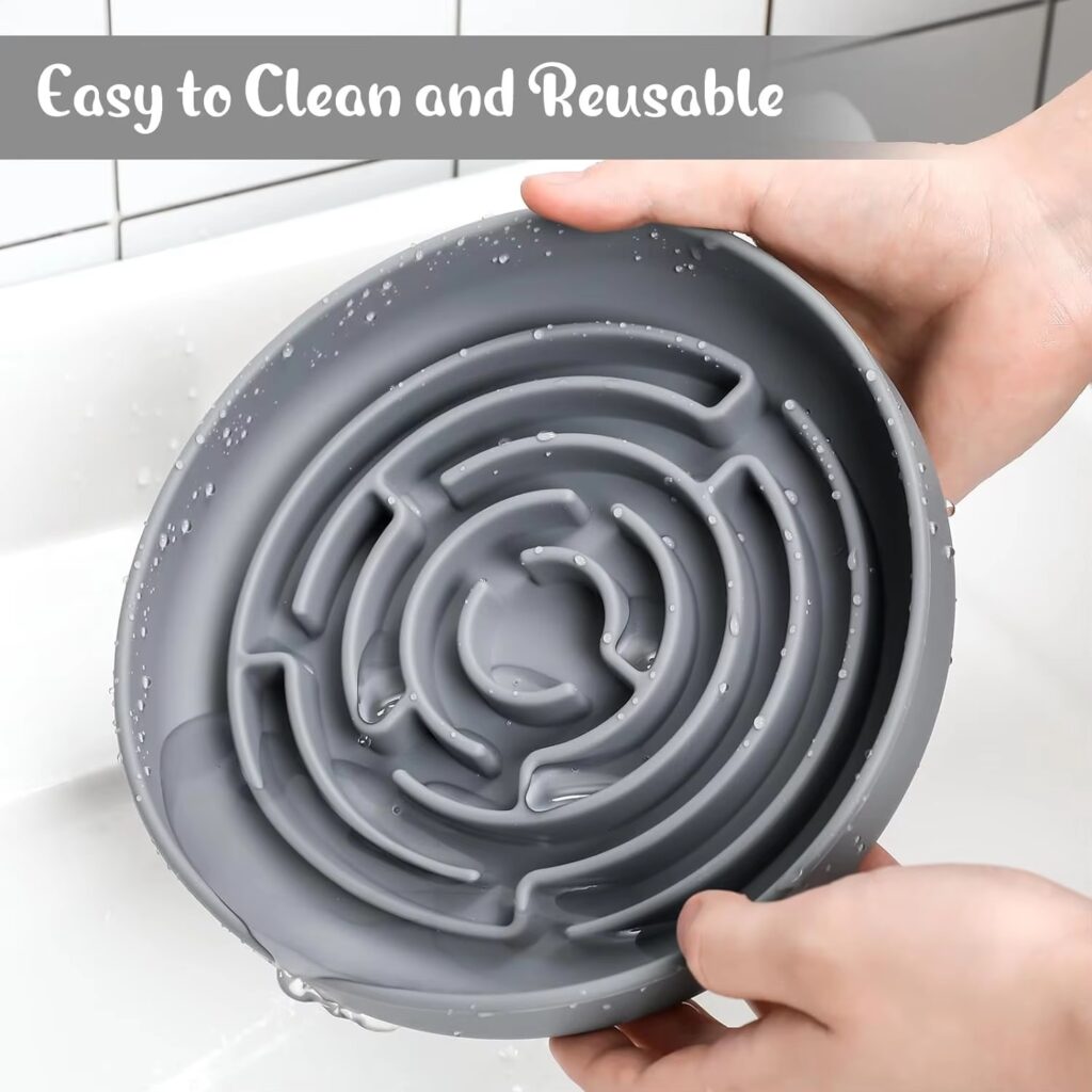 - Easy to Clean: Cleaning silicone slow feeder dog bowls is simple; you can either rinse them with water or put them in the dishwasher. Their smooth surfaces make it difficult for food residue and greaand qrease to accumulate, which sianifcantly lessens the cleaning load on pet owners and ensures that their pets are fed sanitary and clean food