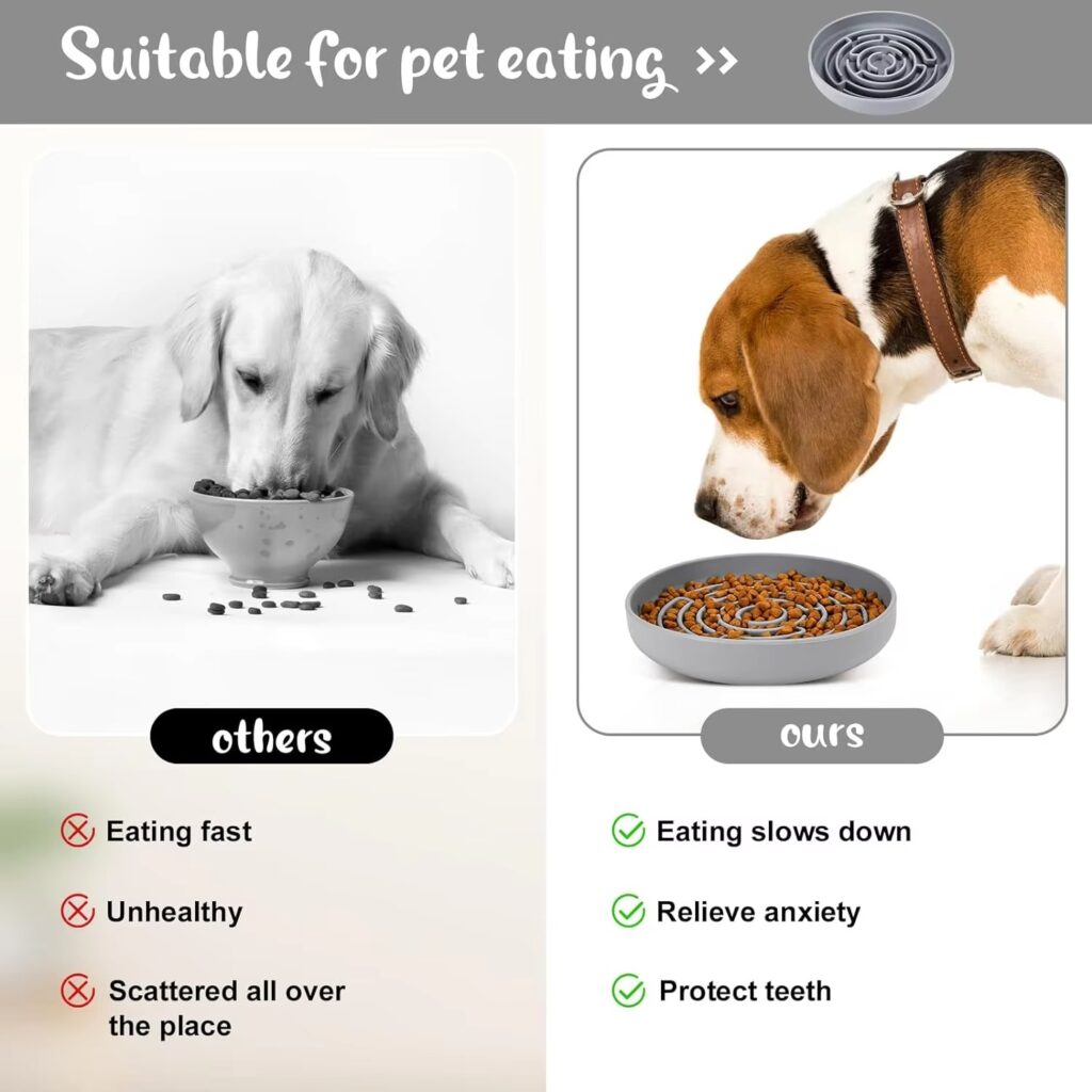 - The Ideal Size: All dogs will love this interactive 7.5-inch x 1.2-inch silicone slow-feeding dog bowl, which can store up to 1-2 cups of dry, wet, or fresh food