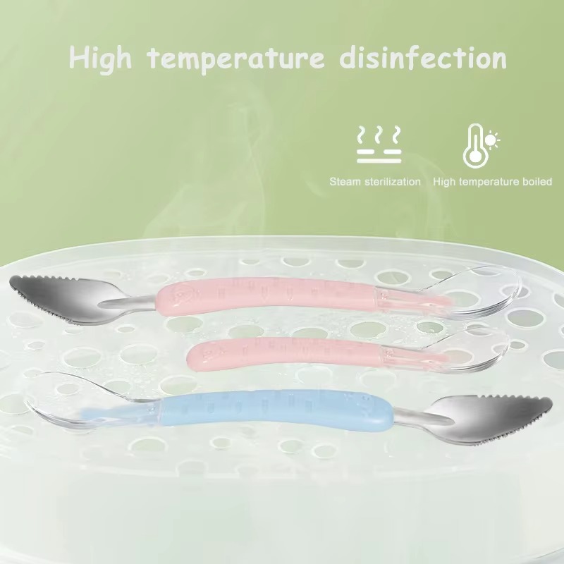 Note: one end of our spoon is designed with a stainless steel scraper head, which is only used for scraping fruits; It is not recommended to be used directly for feeding children to prevent safety hazards