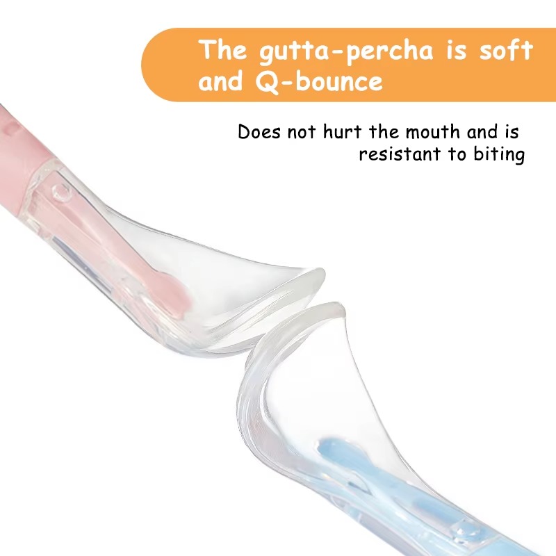Newborn 2 in 1 Double-headed Soft Tip Safety Training Spoon Silicone Mold Baby Food Scraping Fruit Mud Scraper Feeding Spoon