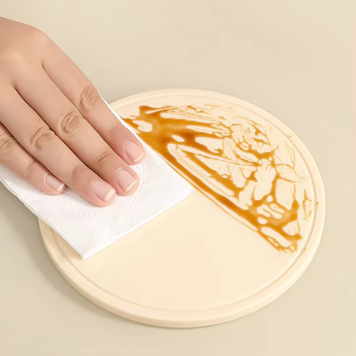 The surface is smooth, easy to clean, and has no odor. The silicone material has good hydrophobicity. The groove design on the back means that stains will not penetrate into the table or drain the cup. Just rinse it with water and it will be as clean as new.