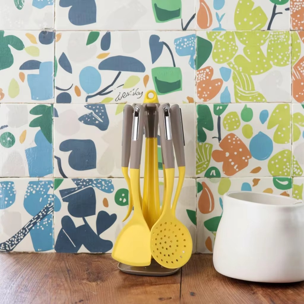 【Great Gift Idea】Still looking for the perfect housewarming or holiday gift? This stylish 7-piece kitchen utensil set is the ideal choice! Its harmonious color combination and simple design complement any kitchen décor, making it both thoughtful and practical. The included rotating hook storage rack makes it easy to access and organize utensils, a thoughtful feature that is sure to delight every home chef.