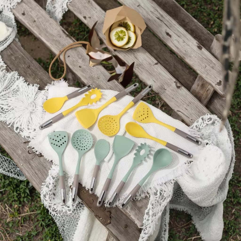 【High Heat Resistance】The utensil tool can withstand temperatures up to 446°F/230°C without melting or warping. The silicone kitchenware set is made from food-grade silicone material and is BPA-free. There is no need to worry about food sticking to the cookware during cooking, and it is easy to clean.