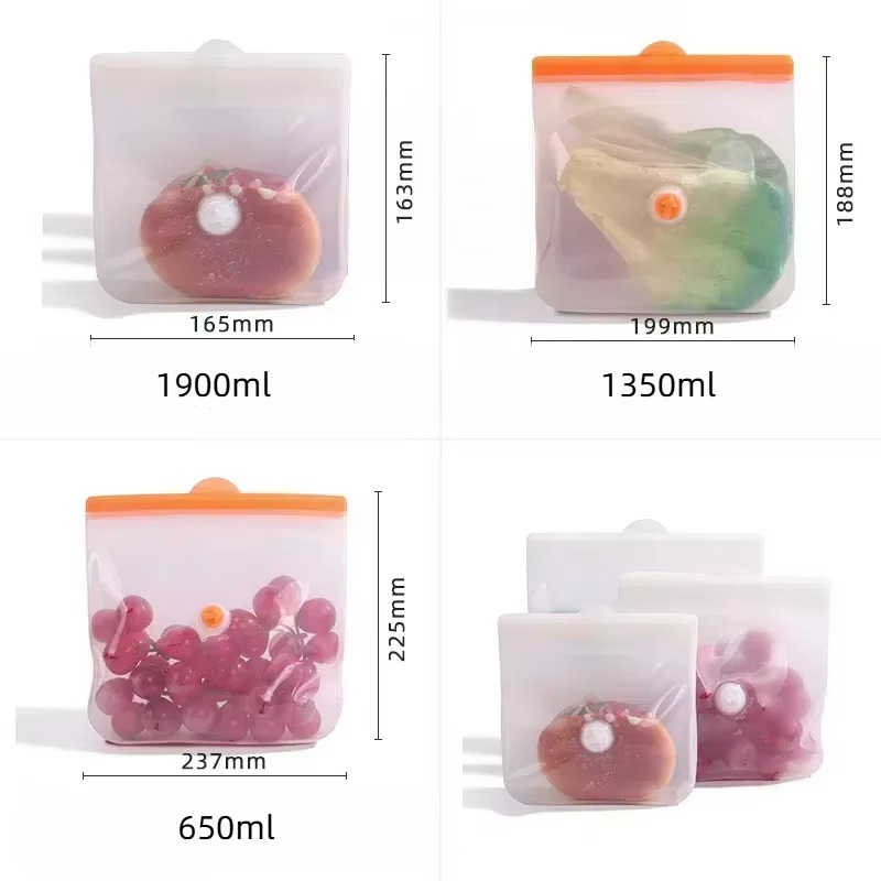 Wholesale Food Grade Silicone Mold Maker Reusable Ziplock Vaccum Fresh Keep Sealing Storage Pouch Silicone Food Storage Bag