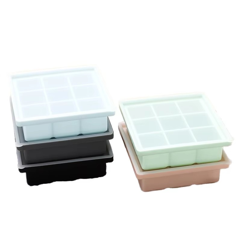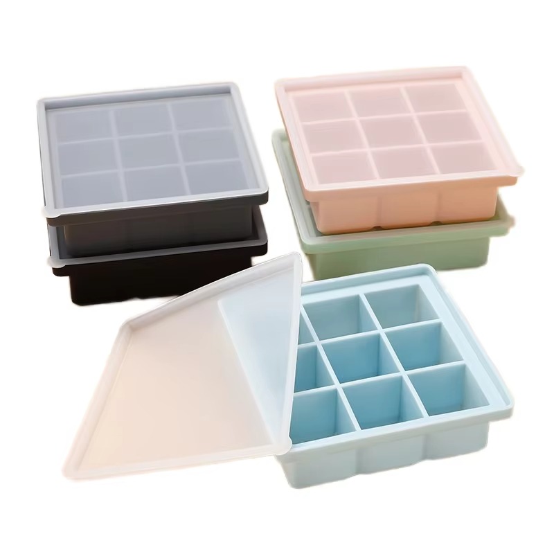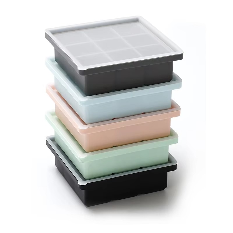 Large Eco-Friendly Food Grade Silicone Mold Ice Cube Stackable Lid Freezer Big Square Ice Tray for Whiskey Ice Cream Tools