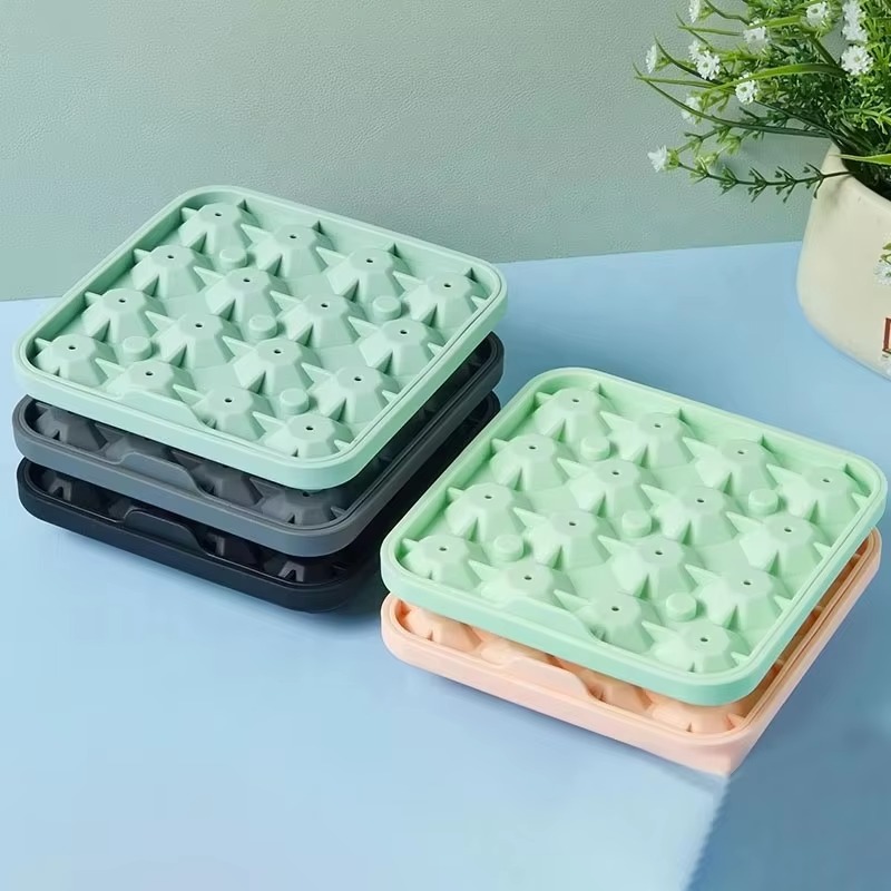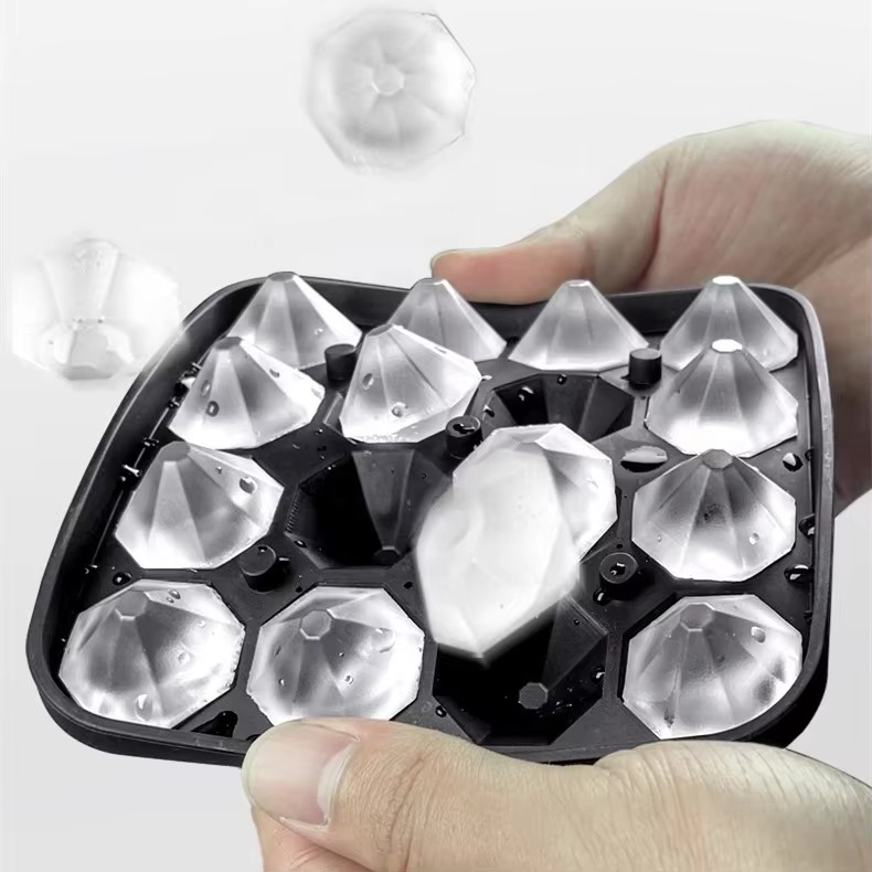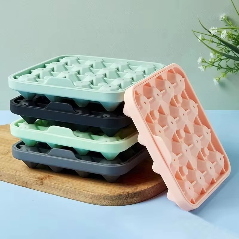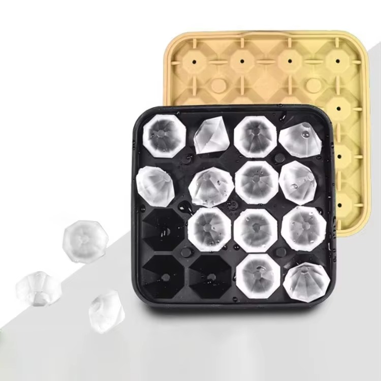 Wholesale Food Grade Silicone Mold Ice Cubes with Lid 16 Cavity Reusable Whiskey Ice Cube Tray Diamond Ice Cube Molds