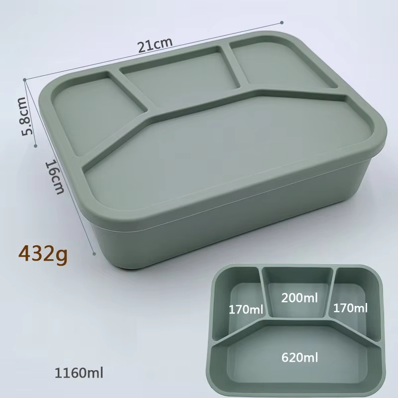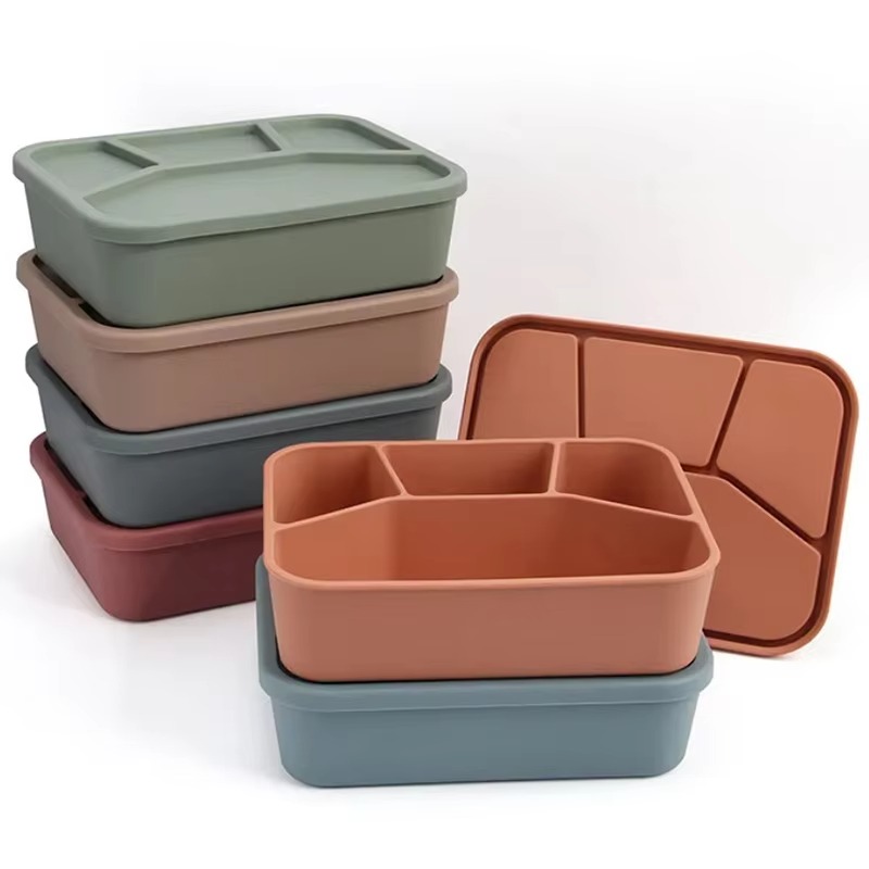 Wholesale Food Grade Silicone Mold Bento Box Plate Square Kitchen Food Storage Lunch Plate for Dinner for Meal Preparation